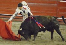 El punto y final a una gran tarde la puso el novillero de la tierra Borja Colladoante un novillo de Fuente Ymbro. Salió a por todas a recibirlo a la puerta de chiqueros. Faena de entrega y pasión en novillero dando la cara y sin dudarle ante un pitón izquierdo complicado que pasaportó de una entera y que le permitió salir en hombros al cortar las dos orejas.