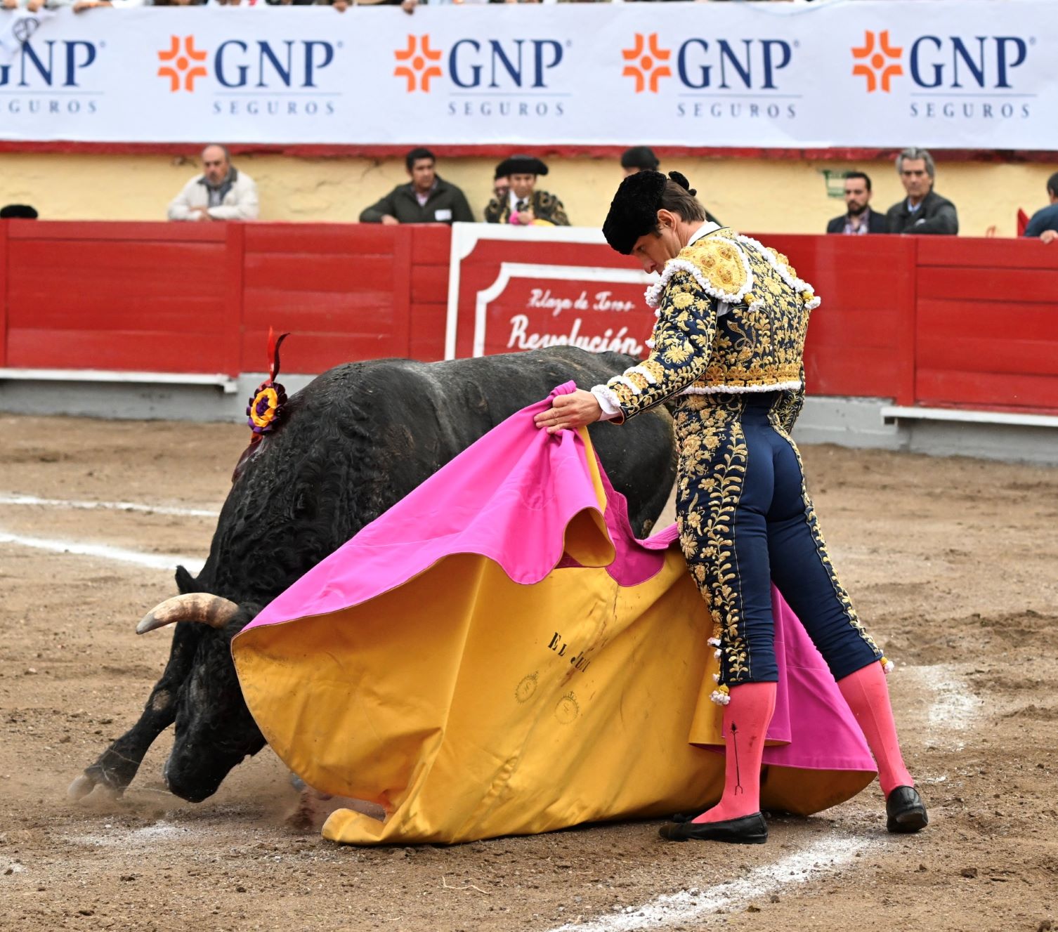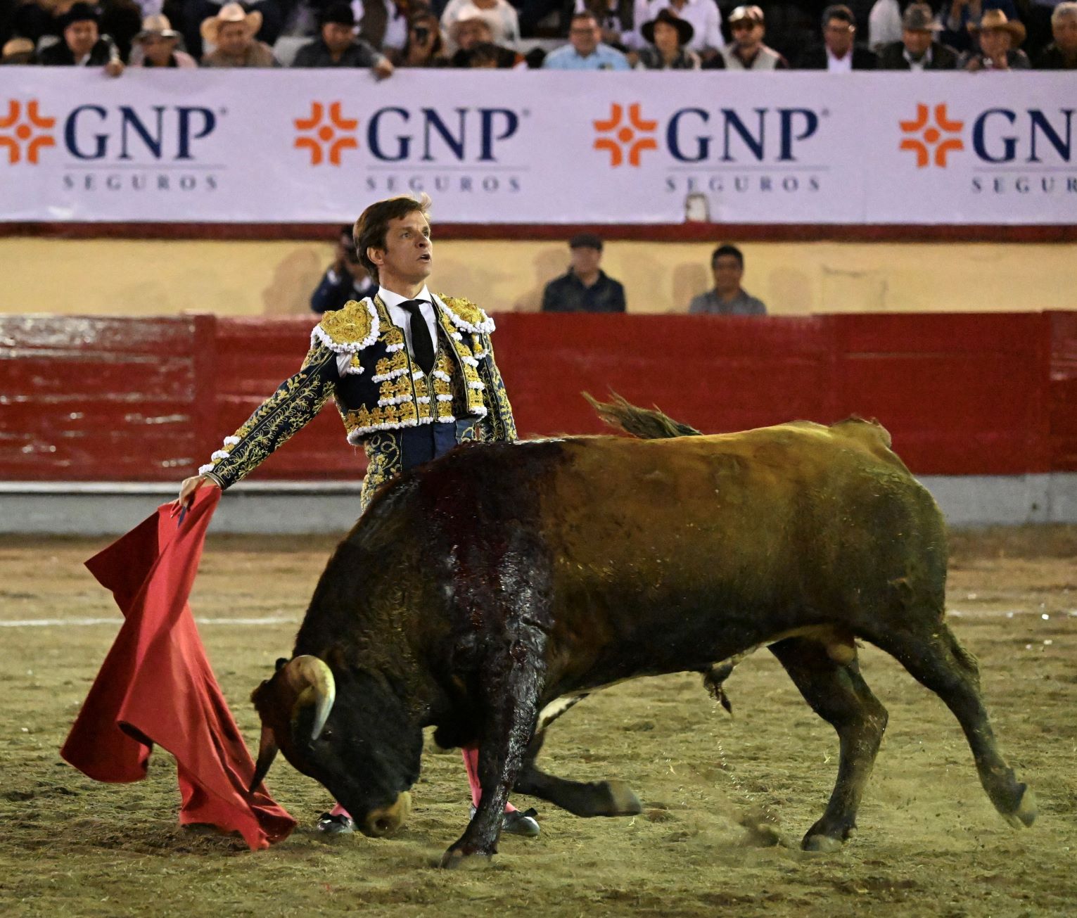 En el toro que abrió plaza, el madrileño Julián López “El Juli” lanceó toreramente a la verónica. Tras el segundo tercio, el subalterno Gustavo Campos se desmonteró. Con la muleta, el espada ibérico comenzó doblándose, pero al dar el toro una voltereta se lastimó, sin embargo, dada su bravura pudo seguir, por lo que su lidiador lo fue sobando poco a poco hasta que le armó una faena importante, meritoria y talentosa, teniendo sus mejores momentos por el lado izquierdo al hacer toreo con largueza, además de algunos derechazos plenos de temple. Falló al matar y al final se le aplaudió el esfuerzo.