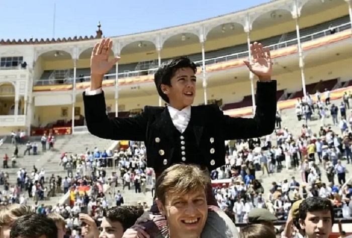 Marco Pérez salió a hombros por la puerta grande rodeado de niños, en esta matinal fuera de abono en Las ventas de Madrid.