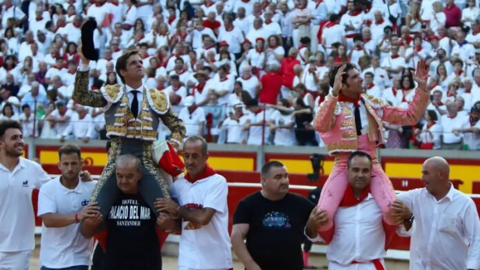 El quinto sí sacó ciertas virtudes desde que salió de chiqueros, como la prontitud y la humillación, tanto en el capote de Juli como en el de Álvaro Montes en la brega. Un inicio por alto a pies juntos sirvió para preludiar una faena de muleta que fue encelando cada vez más aun toro de mucha clase. El temple de Juli hizo el resto, porque si rotunda fue la primera serie con la mano derecha, con la mano muy baja, macizas fueron las tandas al natural, a pesar del viento que molestaba más de la cuenta. Hasta molinetes de rodillas le regaló a Pamplona, que sobre todo lo vio torear muy despacio, utilizando muy bien los tiempos entre muletazo y muletazo. Unas luquesinas perfectamente ejecutadas epilogaron la labor. Un estoconazo sin paliativos dejó patente que el madrileño debía pasear los dos trofeos que el palco concedió.