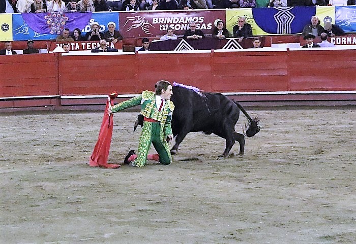 Daniel Sánchez saludó su astado con dos largas en la propia boca de riego, ambas dejando el capote por los aires. Luego verónicas “aprisadas” con más deseos que técnica. Con la muleta el menudo novillero brindó al doctor Cristian Garcés e inició una faena con suavidad, acompañada de una mano sin mucha fuerza para sostener el engaño. Algunos muletazos con trazos poco ceñidos y otros suaves y de buen fin. Con la tizona falta carretón y malicia. Hubo palmas cariñosas para el joven novillero. El novillo fue de menos carnes que el primero y tuvo buenos andares.