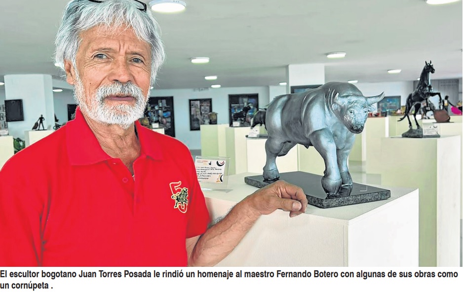 El escultor bogotano Juan Torres Posada le rindió un homenaje al maestro Fernando Botero con algunas de sus obras como un cornúpeta .
