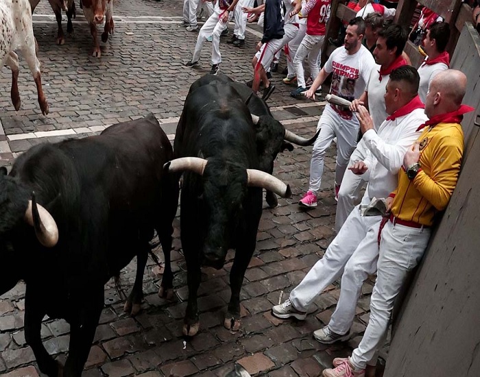 Según el parte médico provisional, dos participantes han tenido que ser trasladados al hospital de Navarra con una contusión facial, ninguno herido por asta de toro.