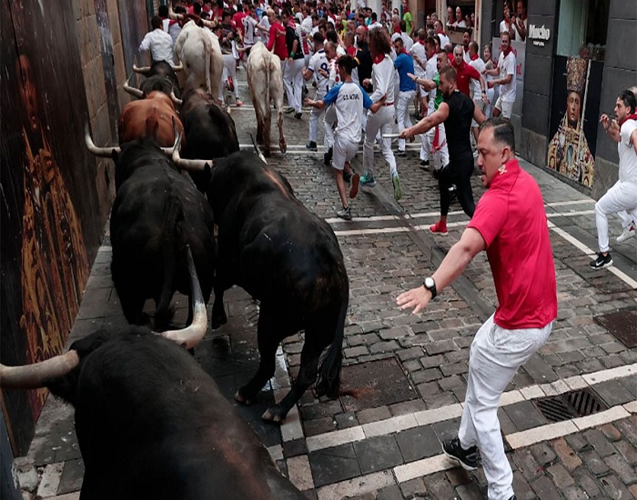 Pamplona – España. El cuarto encierro de San Fermín 2024 ha sido vibrante y muy rápido. Los toros de Fuente Ymbro han tardado dos minutos y 18 segundos en llegar a los corrales de la plaza de toros de Pamplona. Y pese al ritmo vertiginoso y lo concurrida que estaba la calle este miércoles, muy limpio.