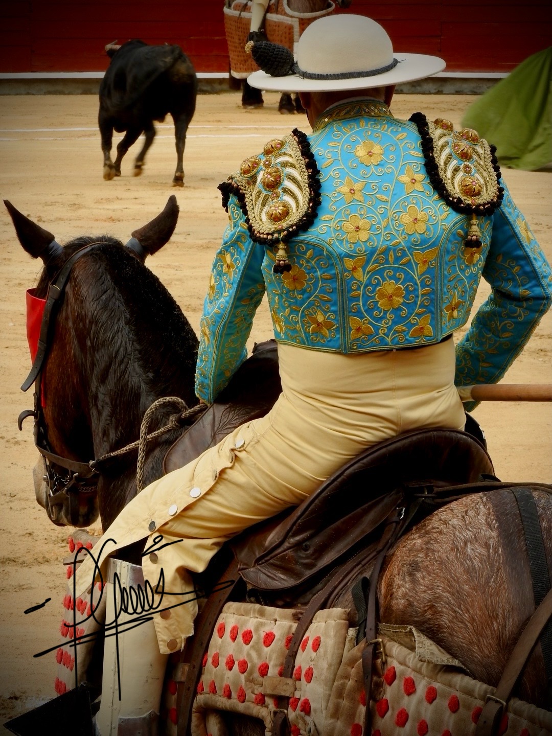 Con el primero de la tarde, Cayetano Romero, desde la silla del caballo, ejecutó una vara impecable, que resonó como un acorde mayor en el ánimo de los asistentes. Ricardo Santana, ya en el tercio de banderillas, colocó un par lleno de temple y precisión, mientras que José Calvo protagonizó un quite prodigioso que rescató a su compañero en un momento crítico, arrancando los primeros grandes aplausos de la tarde.