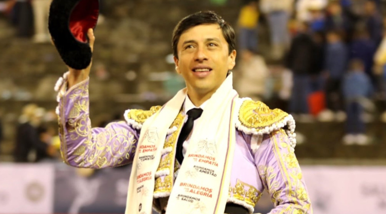 El matador Manuel Libardo (malva y oro): dos orejas simbólicas y silencio tras aviso.
