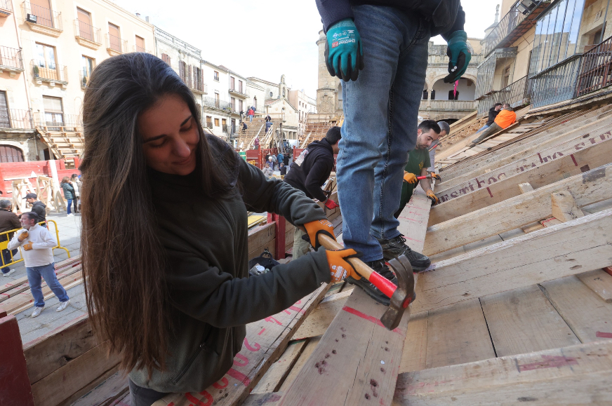 «Nunca habían participado mujeres en la plaza, otra cosa es que en casa ayudasen a colocar las maderas. Yo he preguntado a los montadores más antiguos y no recuerdan que las mujeres fueran a la plaza a montar. El año pasado ellas dieron la sorpresa», explica a EFE Nino Rodríguez, divulgador de la cultural local.