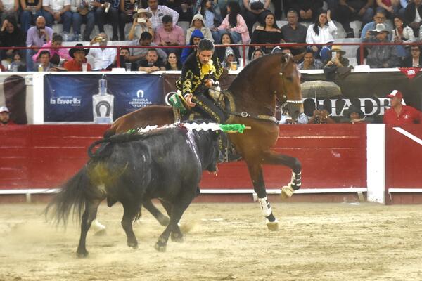 El rejoneador Emiliano Gamero, con una buena monta y dominio de sus cabalgaduras, logró realizar una variada faena con espectaculares banderillas al violín y una corta que resultó emocionante, su faena fue aseada y esforzada, la cual culminó con un pinchazo y un rejón de muerte certero. Al aparecer la lluvia, Gamero recibió la primera oreja de la tarde.