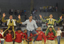 En una feria marcada por el déficit ganadero, Salento el hierro de los González Rincón, “Tuco hijo” y Mauricio, herederos de vieja prosapia Santa Coloma colombiana vino y cerró la feria con honores. Sus argumentos; trapío, romana, bravura con los caballos y nobleza. De salida ovacionados todos, menos el tercero. De arrastre el primero, el segundo, cuarto, y vuelta al ruedo al sexto, “Mochuelo” número 280, de 470 kilos. Defectos, el pando fondo. Todos vinieron a menos, incluido el bravo cierraplaza.