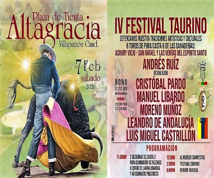 Villapinzón vuelve a ponerse de pie, muleta en mano y afición en el alma. La organización del IV Festival Taurino “Defendamos Nuestras Tradiciones Artísticas y Culturales” ha confirmado de manera oficial la realización del festejo el próximo sábado 7 de febrero de 2026 en la Plaza de Tienta Altagracia, despejando cualquier duda y enviando un mensaje claro: en esta tierra la tauromaquia no se improvisa, se defiende con hechos, rigor y compromiso.