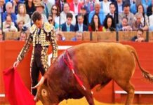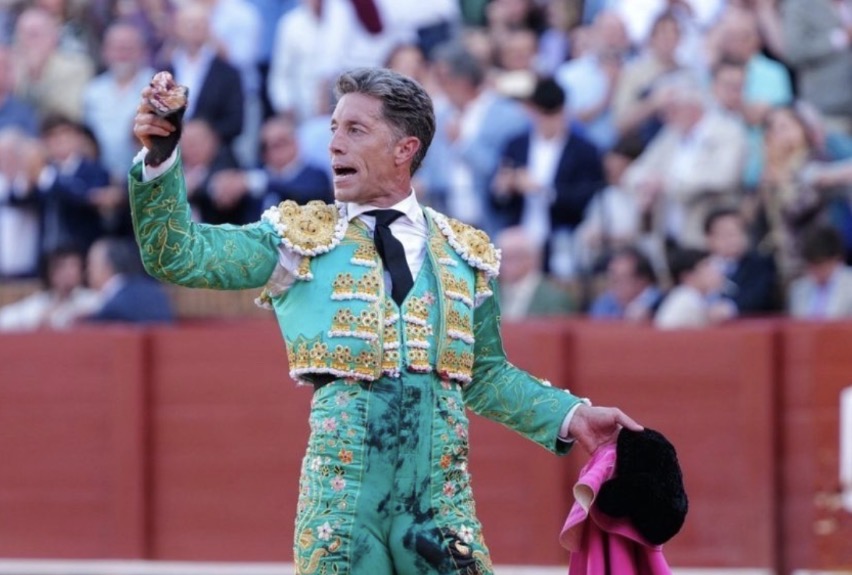 Un telón de fondo así y tres toreros conscientes y dispuestos hicieron de la tarde del adiós de la Feria de Sevilla un extenso capítulo más que agradable que comenzó con el antediluviano (en las hechuras) primero de la tarde, saltó pronto las tablas, hasta tocar la barrera. Esa irrupción quedó atrás cuando, enseguida, Manuel Escribano estuvo eficaz con las banderillas. Ya hablando de lo fundamental, el de la familia Miura mantuvo siempre la cabeza arriba en los tantos viajes que emprendió, aunque se fue quedando corto y mirón. Ante eso, el torero andaluz hizo una sola cosa: echar para adelante, con un solo propósito: someter. Hubo suspenso y emoción, aparte de muletazos de mérito. Saludos.